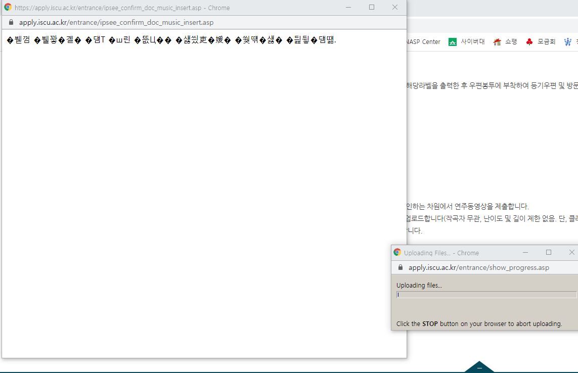 용량이나 파일형태 모두 기준에서 어긋나지 않습니다만 업로드를 시작하면 30초 이내에 화면이 이렇게 됩니다.